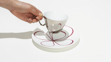 カップとソーサーの位置や見る角度によって見え方が変わるので、カップを置いたり持ち上げたりを繰り返して、カップに写り込むグラフィックを何度も何度も眺める方もいらっしゃいます。