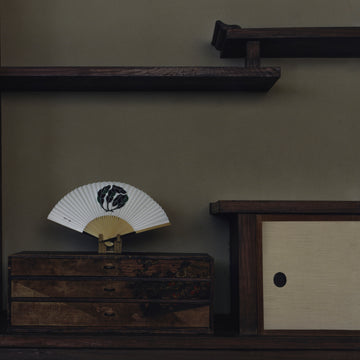 日本のグラフィックのもとともいえる家紋。現存している約6万個の中にある350種のカテゴリーから特徴的な家紋を選びました。扇子は、より美しく見えるために骨の形からデザインしています。家紋の表現もポイントで色を入れて新しい印象に。箱入りでギフトにもおすすめです。